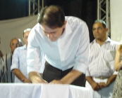 O Governador Cid Gomes esteve ontem, dia 13 de outubro, no município de Beberibe, para assinar a ordem de serviço para construção da Escola Estadual de Educação Profissional. A solenidade ocorreu às 19h, na Praça da Igreja Matriz do município, com a presença do Secretário Executivo da SEDUC, Idilvan Alencar, do Prefeito Odivar Facó, do Deputado Dedé Teixeira, da Coordenadora da 9ª CREDE Dóris Sandra Leão e demais autoridades municipais.