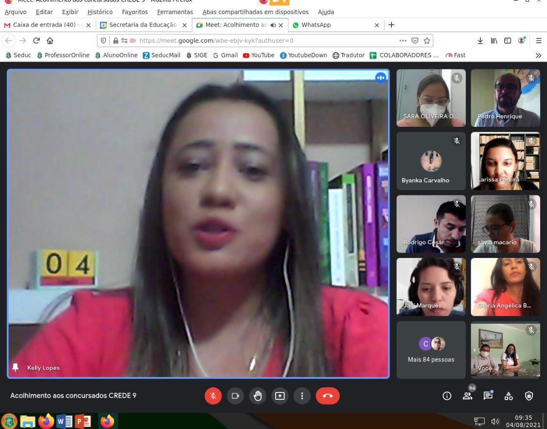 Foi com imensa satisfação que na manhã de hoje, 4 de agosto de 2021, os servidores da CREDE 9, juntamente com os núcleos gestores das escolas, recepcionaram virtualmente os novos professores da rede pública estadual que se lotaram na nossa regional.