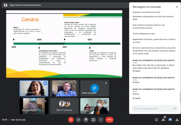 Logo após a acolhida, o Professor Pedro Henrique, Coordenador da CREDE 9, fez sua fala, recebendo os participantes e apontou os objetivos e a relevância das temáticas a serem tratadas, ao passo que trouxe à plenária os primeiros convidados: Professora Kelem Freitas da COADE/SEDUC e o Professor Jorge Lira, Coordenador do Programa Cientista-chefe, que trataram da Avaliação de Impacto, realizada pela Secretaria Estadual de Educação, para avaliar as perdas de aprendizagem, geradas pelo período pandêmico e as intervenções, que podem ser adotadas pelos gestores.