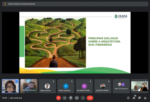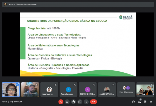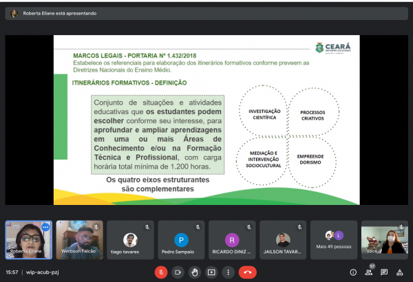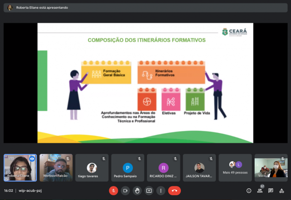 A professora Roberta Aleixo da COGEM/SEDUC trouxe ao público presente os modelos e propostas de implantação do Novo Ensino Médio, elaboradas a partir de discussões com diversos segmentos da educação e que passarão a ser adotados em 2022.