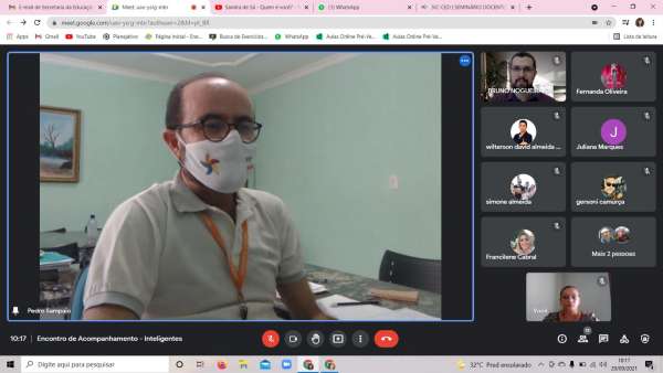 Estivemos na manhã do dia 29/09, sob a condução do Articuladorr Regional, Dr Bruno Garcia e a técnica pedagógica da Cecom, Silvia Araújo, com o objetivo de acompanharmos as ações do Programa InteliGENTES nos municípios de Cascavel, Horizonte e Pacajus. O encontro contou com a presença do responsável de cada SME, Coordenadores Pedagógicos e professores que estão ministrando as aulas aulas do Programa, esse momento foi muito satisfatório, nos mostrando que as aulas estão começando a serem dadas de forma híbrida em Cascavel e Pacajus, enquanto Horizonte se iniciará na próxima semana e que o 2° Ciclo de atividades já se iniciou. Nossa gratidão a todos os envolvidos que proporcionam aos discentes trabalharem as Competências Sócio emocionais.
