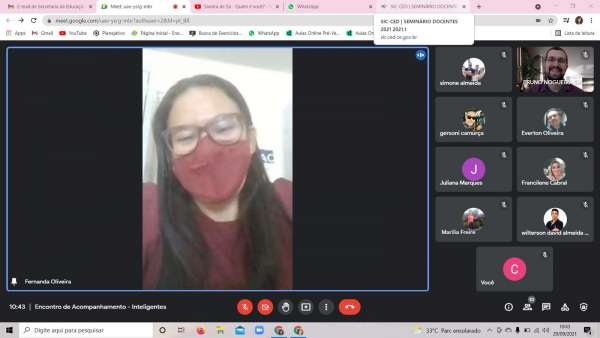 Estivemos na manhã do dia 29/09, sob a condução do Articuladorr Regional, Dr Bruno Garcia e a técnica pedagógica da Cecom, Silvia Araújo, com o objetivo de acompanharmos as ações do Programa InteliGENTES nos municípios de Cascavel, Horizonte e Pacajus. O encontro contou com a presença do responsável de cada SME, Coordenadores Pedagógicos e professores que estão ministrando as aulas aulas do Programa, esse momento foi muito satisfatório, nos mostrando que as aulas estão começando a serem dadas de forma híbrida em Cascavel e Pacajus, enquanto Horizonte se iniciará na próxima semana e que o 2° Ciclo de atividades já se iniciou. Nossa gratidão a todos os envolvidos que proporcionam aos discentes trabalharem as Competências Sócio emocionais.