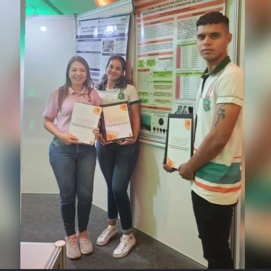 1° Lugar na Categoria Educação Ambiental com o projeto SCOBY: Filme biotecnológico de celulose bacteriana otimizada por resíduos de Jerimum da EEMTI Marconi Coelho Reis – Cascavel. Alunois: ISAAC LIMA SILVA e ANA REBEKA MONTEIRO LIMA DE SOUZA e a professora HELOINA LOPES CAPISTRANO.