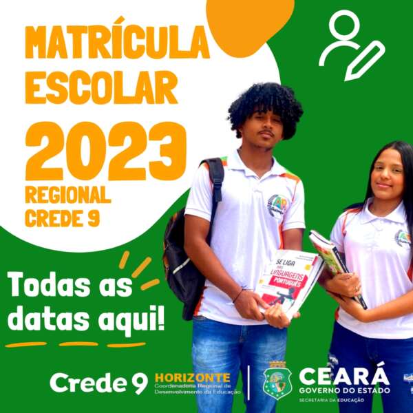 A CREDE 9 divulga todas as datas para a realização das matrículas do ano letivo das escolas da regional deste ano de 2023. São 23 escolas que contemplaram equidade de ensino e oportunidades de inserção de muitos jovens e adolescentes no Ensino Médio, a fim de continuar um trabalho importantíssimo de professores, coordenadores e gestores escolares que integralmente fazem de seu trabalho um alicerce para a educação. É válido ressaltar a vasta organização de todas as instituições para a realização dessa importante missão, em que todas as datas, documentações e os demais detalhes necessários são devidamente informados em suas redes sociais, também em seus espaços físicos e ficando disponibilizados para todos. A nona Coordenadoria Regional de Desenvolvimento da Educação deseja a todos os estudantes novatos e veteranos um excelente e promissor ano letivo e que a educação continue sendo o maior e o melhor passo para o futuro.